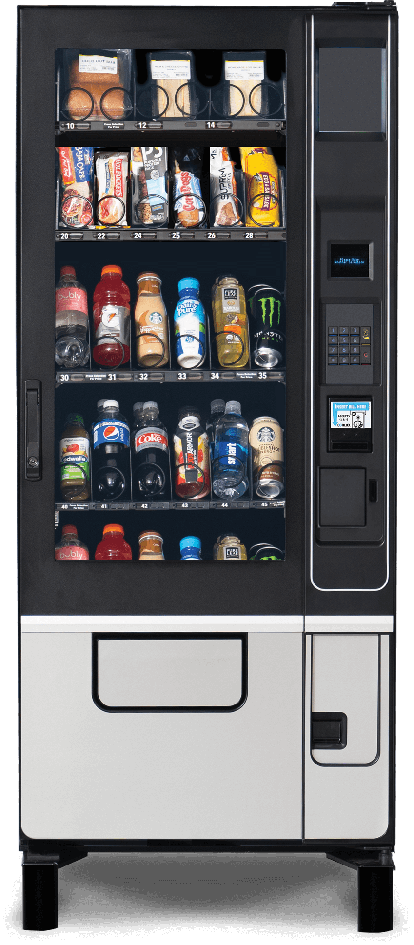 Never lose out on sales again due to payment acceptance issues with the MarketOne 3W Small Cold Food & Drink Vending Machine. It comes standard with a bill acceptor for $1-20. Additionally, an optional Greenlite card reader can be added, which enables your customers to pay with credit / debit cards and mobile wallets.